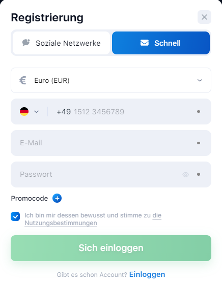 Die wichtigsten Casinofunktionen in Deutschland sind erst verfügbar, wenn Sie die Registrierung auf der offiziellen 1Win-Website abgeschlossen haben . Im Gastmodus können Sie Neuigkeiten ansehen und Geräte im Demomodus testen. Aber Boni und Echtgeldwetten werden für Kunden direkt relevant. Beim Verein können sich Personen über 18 Jahren anmelden, die sich bereits mit den Regeln und Vorschriften des Casinos vertraut gemacht haben. Sie können schnell ein Konto eröffnen, indem Sie eines der sozialen Netzwerke verknüpfen. Das geht ganz einfach von Ihrem PC, Telefon oder Tablet aus. Sie müssen lediglich die Seite aufrufen und die Datenübertragung bestätigen. Sie können sich in Zukunft auf die gleiche Weise mit einem Klick anmelden.